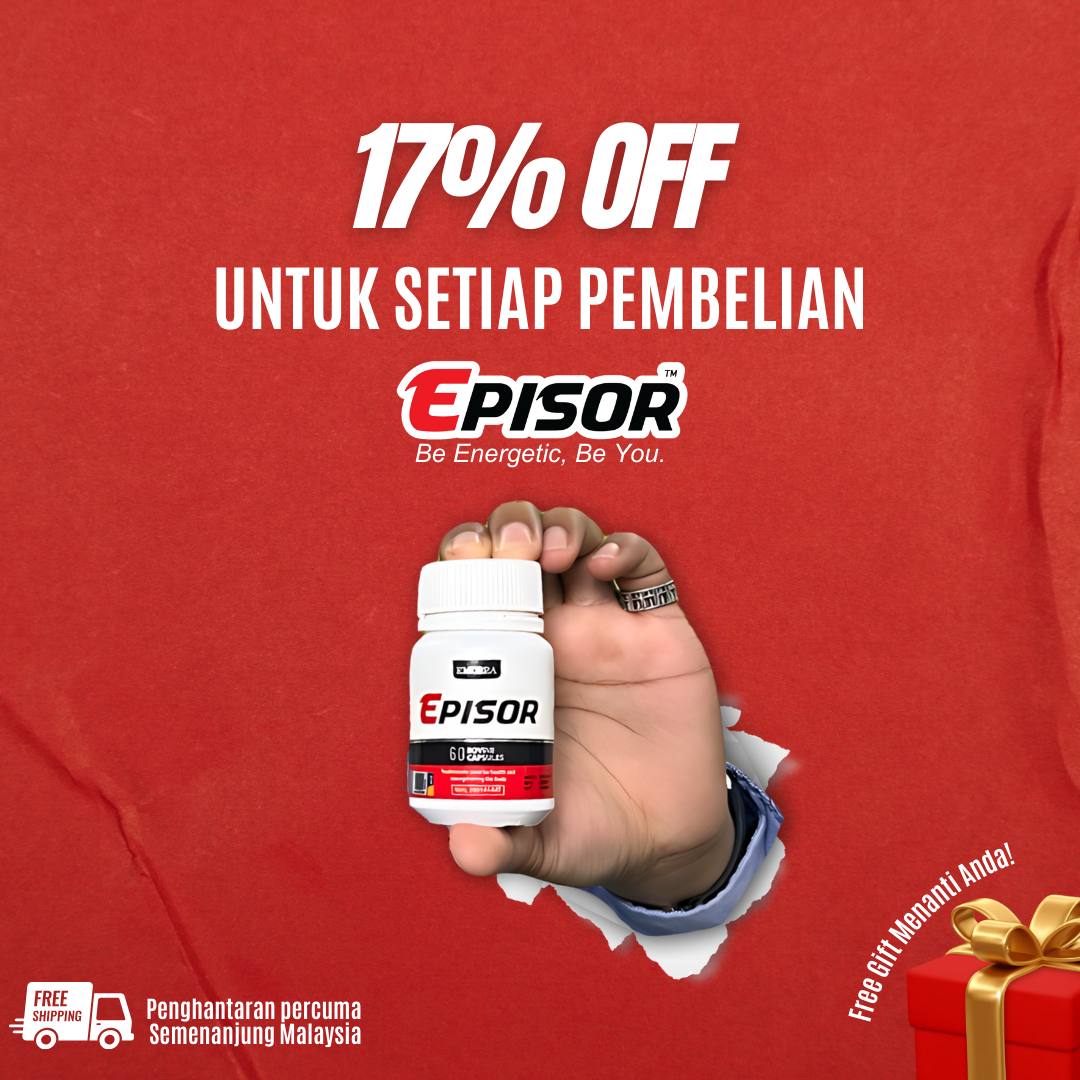 Setiap pembelian Episor anda akan mendapat potongan harga dan juga 1 hadiah percuma
